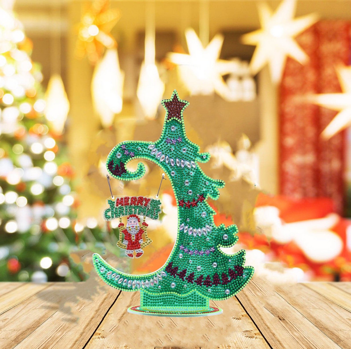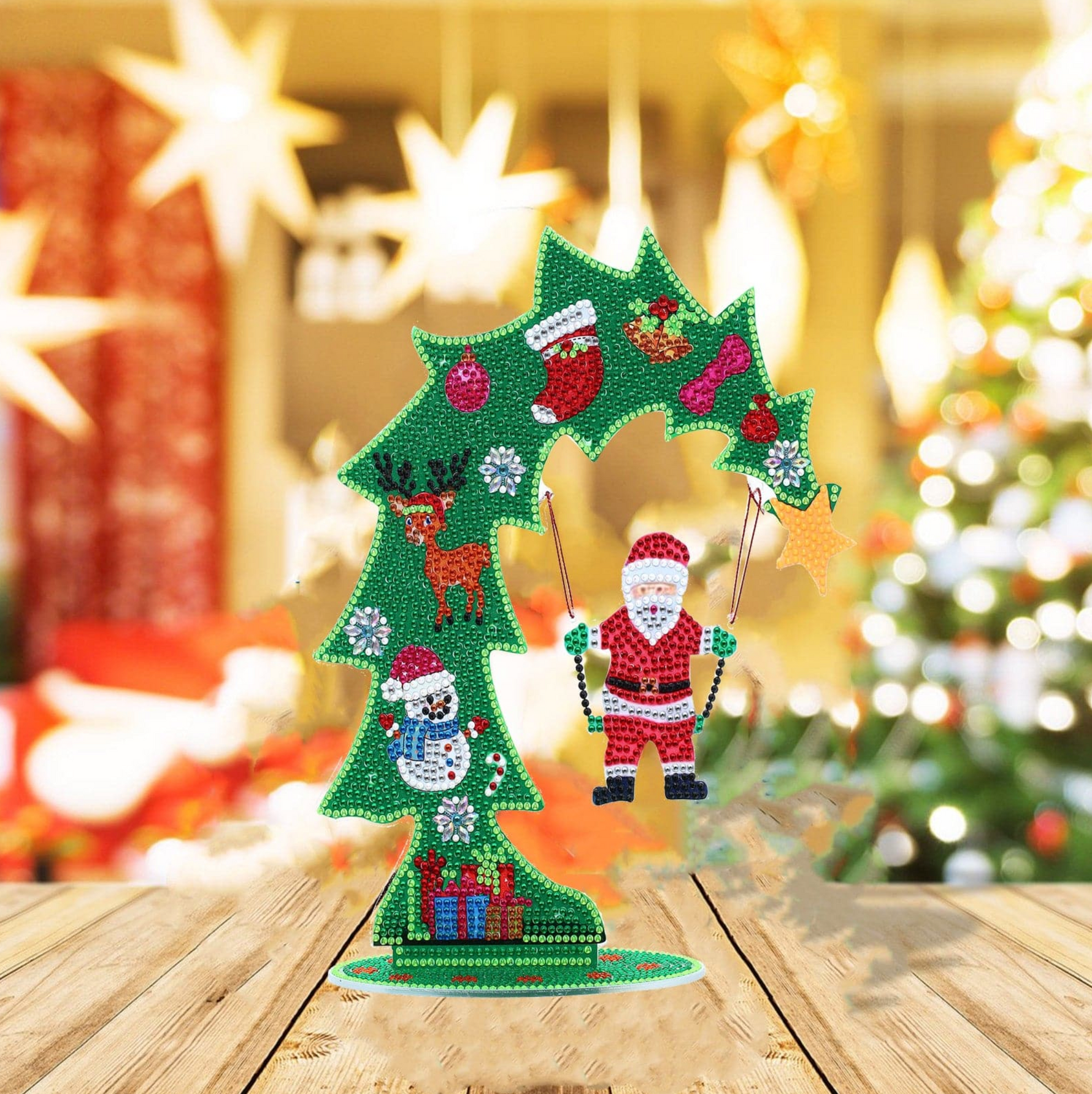 Een echte eyecatcher bij jou thuis tijdens de gezellige kerstdagen. Met het handige meegeleverde voetje zet je de decoratie op elke gewenste plaats in jouw huis. De decoratie dient aan beide zijdes beplakt te worden met steentjes voor een 3D effect. De decoratie wordt geleverd als compleet pakket, om direct aan de slag te kunnen met versieren.